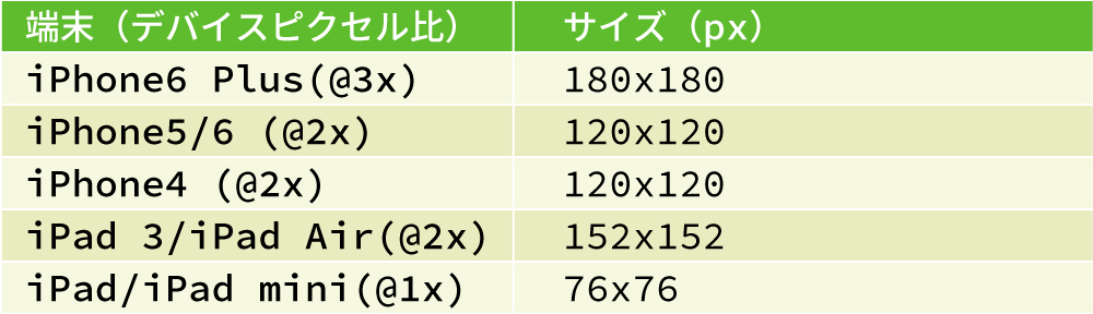 ■iOS端末のホームアイコン必要サイズ