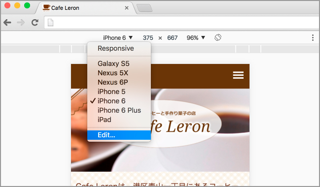 ただ、SafariやChromeは400pxより幅を狭くすることはできないため、より実機の表示領域に近い状態で確認ができるよう、Chromeデベロッパーツールのデバイスモード機能を活用することをお勧めします。